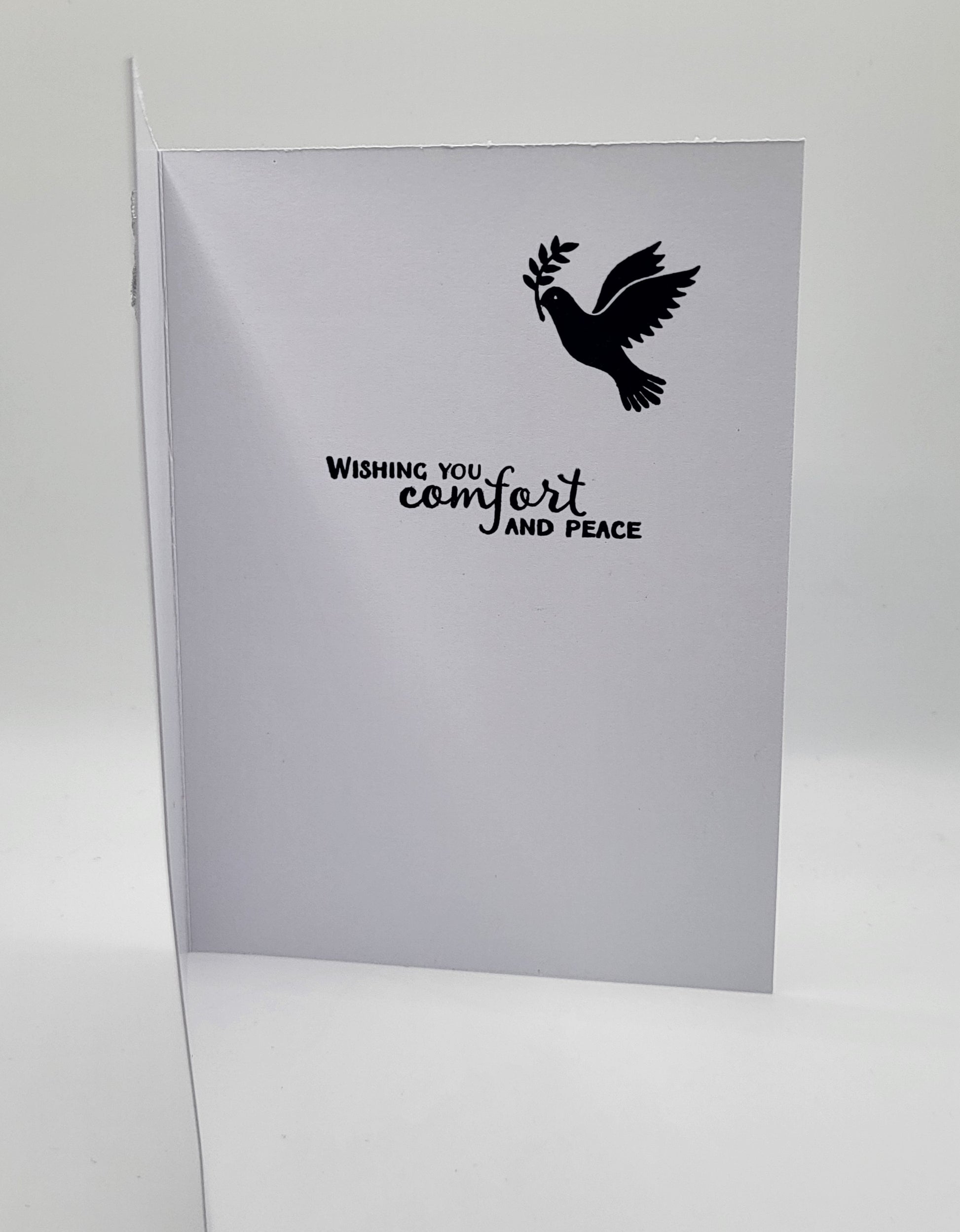 Item 1165 - Handmade 4.25x5.50 sympathy card with coordinating envelope. Inside sentiment: Wishing you comfort and peace