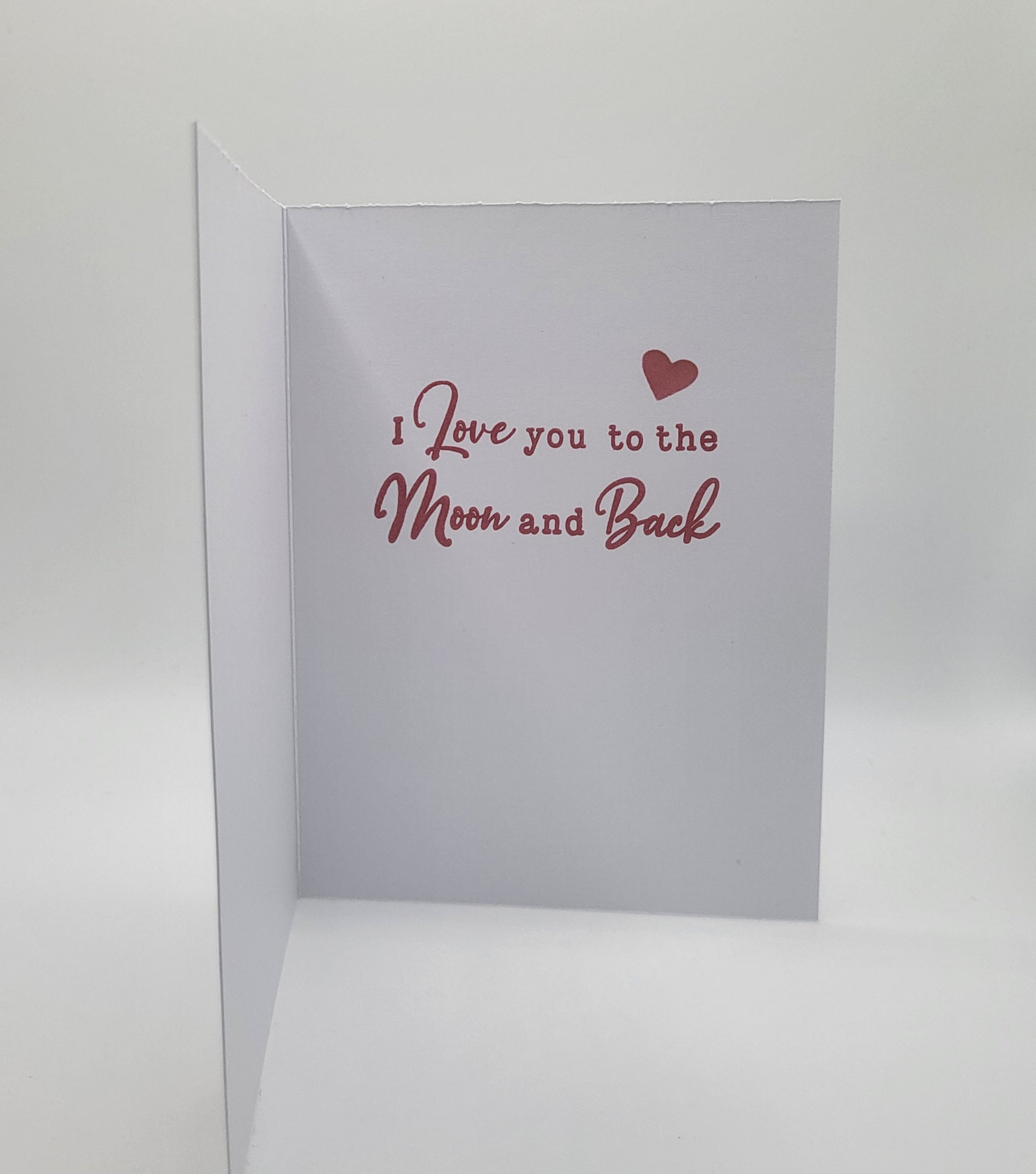 Item 1168 - Handmade A2 greeting card with coordinating envelope. Inside sentiment: I love you to the moon and back.