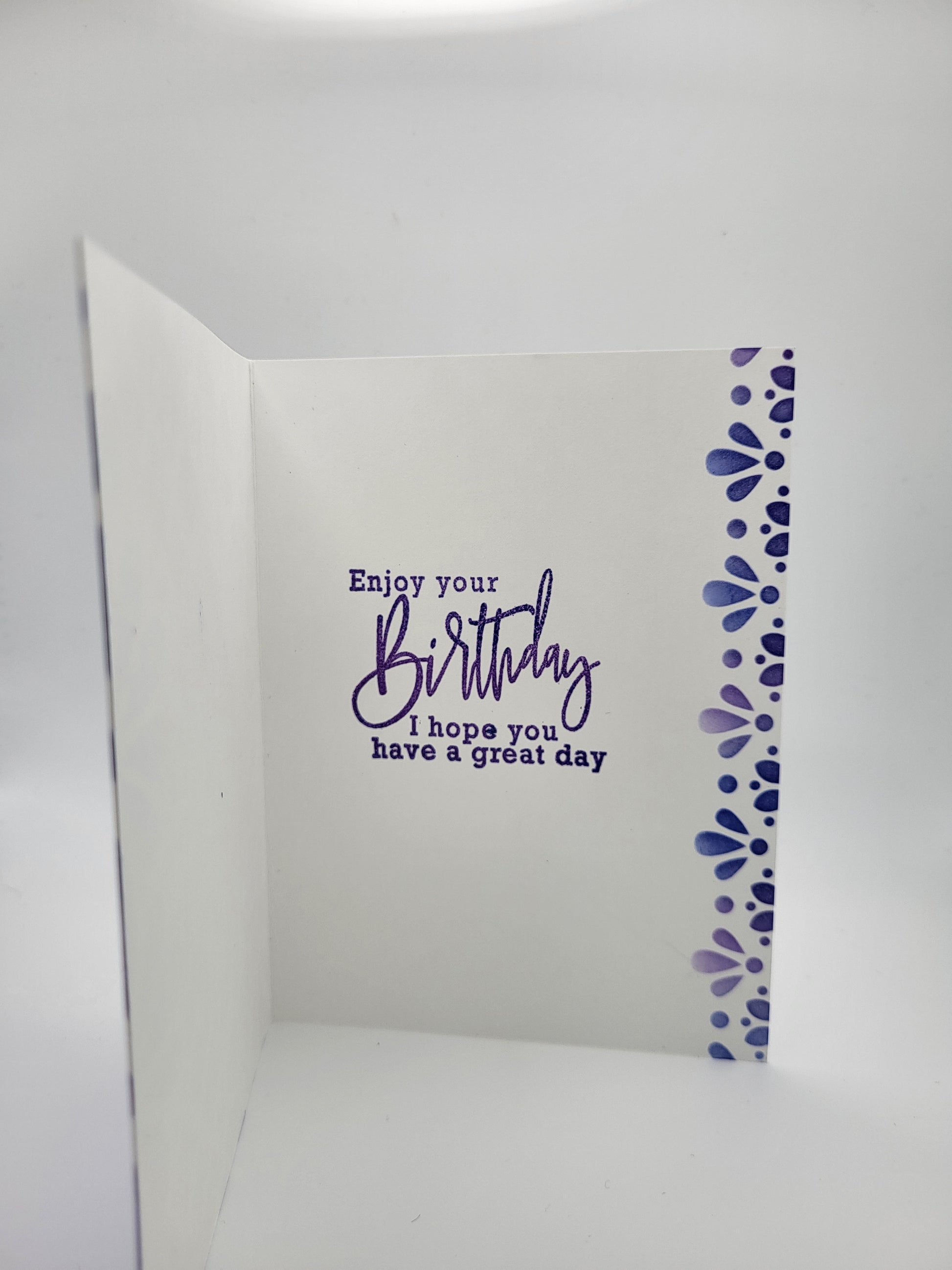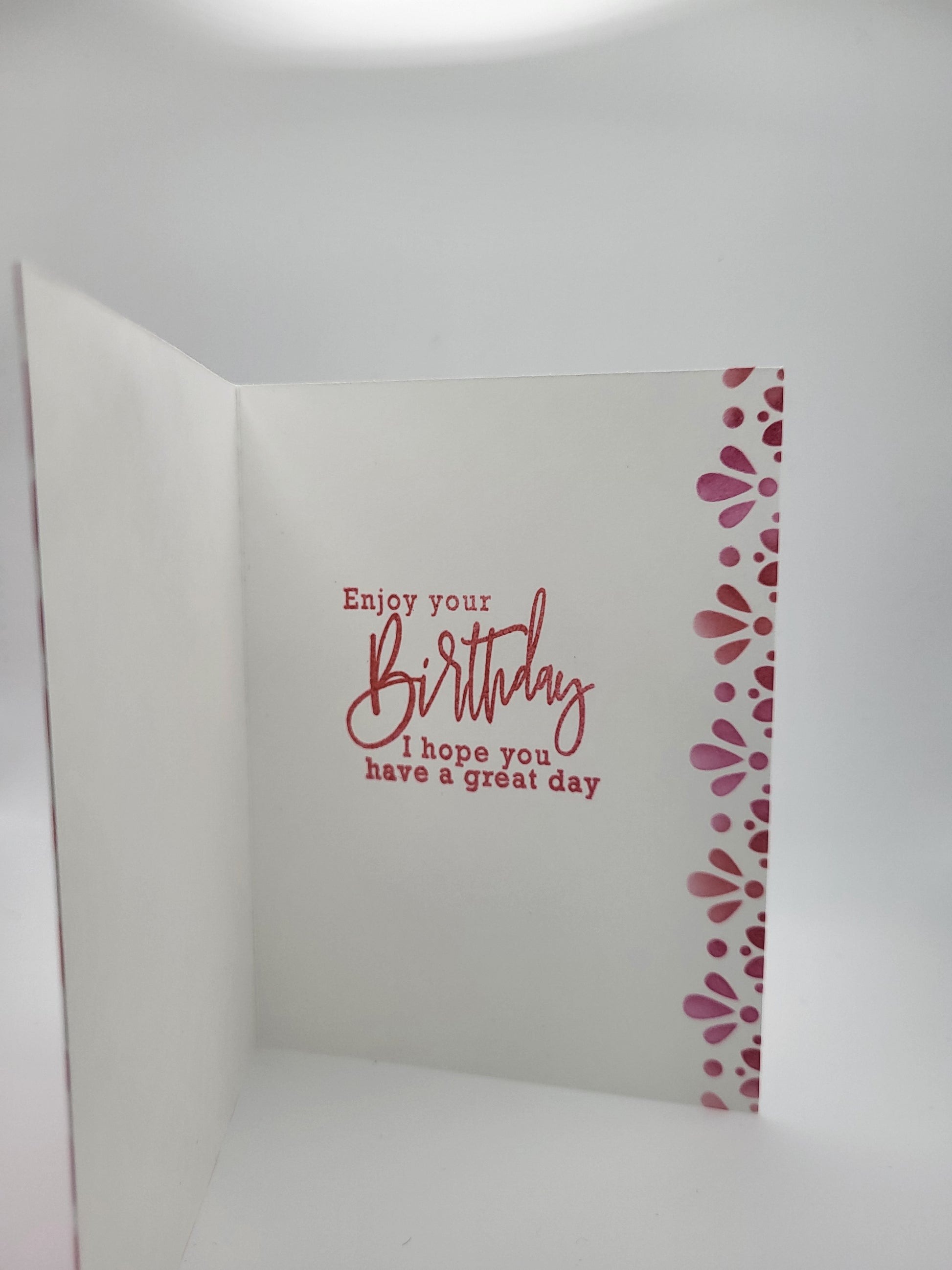 Item 0242 - Handmade 4.25x5.50 greeting card with coordinating envelope. Inside sentiment: Enjoy your birthday. I hope you have a great day.