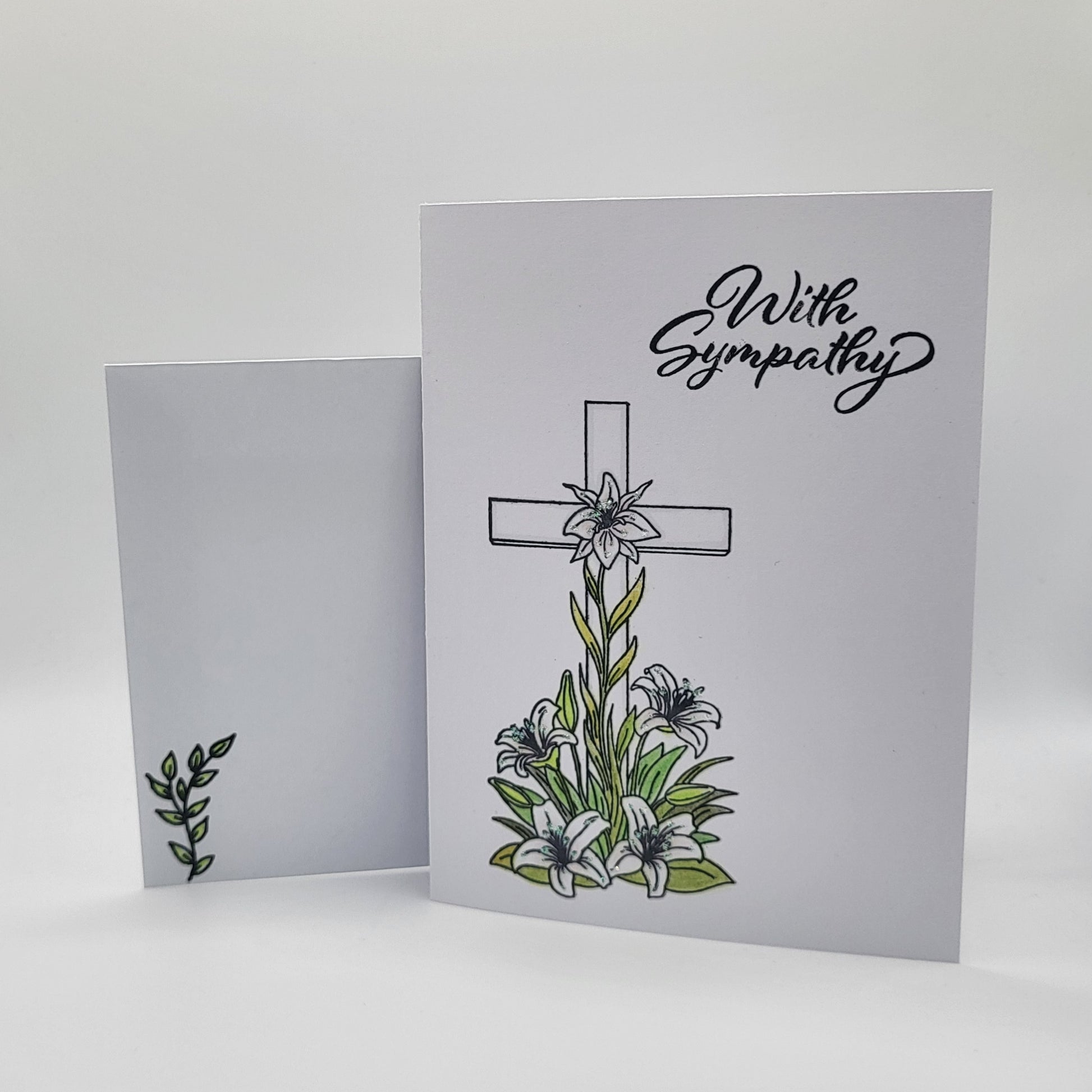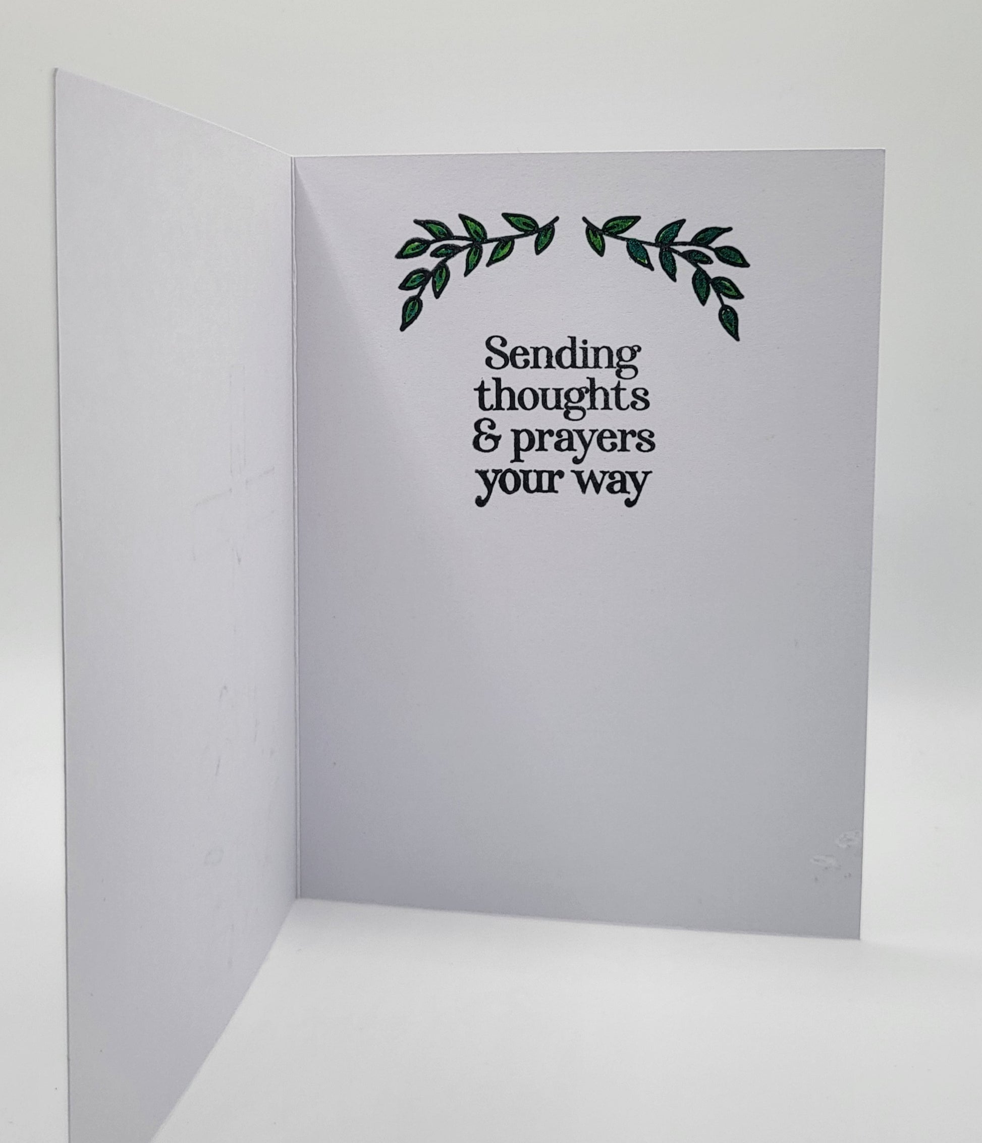 Item 1164 - Handmade 4.25x5.50 sympathy card with coordinating envelope. Inside sentiment: Sending thoughts and prayers your way.
